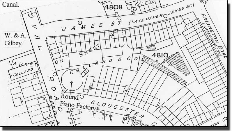 Piano Manufacture in Camden TownThe piano was first demonstrated in London by Charles Dibden, who is most famous for his sea songs. Between the acts of a performance of The Beggar’s Opera at Covent Garden, on 16th May 1767, Dibden accompanied Miss Bricklet on the ‘new pianoforte’. So besides all his other skills as singer, composer, novelist, and above all composer, he played the piano. The youngest of eighteen children, he was trained as a singer and later created many entertainments, performing especially at Drury Lane. He wrote and composed upwards of 1400 popular songs mostly to do with the sea. ‘I sailed from the Downs in The Nancy, Saturday Night at Sea, T’was in the Good Ship Rover, and dozens of other patriotic songs, including the immortal Tom Bowling, written on the death of his eldest brother Captain Thomas Dibden. Charles Dibden lived in Arlington Street, Camden Town and is buried in the churchyard between Bayham Street and Camden Street. It is a strange coincidence that the piano industry should later have grown up in his back yard. Piano manufacture, which had started in the West End, moved first to Tottenham Court Road and when Collard & Collard and other famous firms like Brimsmead and Challen, moved to Camden Town, this encouraged many other firms to set up nearby. Camden Town was a very suitable centre for piano manufacture. The Regent’s Canal could be used for transporting heavy and bulky goods like pianos cheaply, either to the west and so to the complete canal system which covered the Midlands, or east to the docks and from there all over the world. Camden Town was also near the rail-heads of King’s Cross, Euston and St Pancras, so transport conditions by water and rail were ideal. Soon the area became a centre of the piano industry. There was only one bridge over the Thames so piano manufacture south of the river would always be uneconomic. The fortunes of one man may be taken as typical of many. John Sandon, my grandfather, was born in 1851 and at the age of thirty-one he went into partnership as a piano manufacturer with a man called Steadman. Neither appears in the Post Office Directory before this, so presumably it was a first-time venture for both of them. They took premises at 54 Queen Street, Camden Town. By the time Sandon & Steadman set up their business, London had over two hundred piano making firms, three quarters of them north of the river. Manufacture in North London developed early and by the time the southern suburbs were built, the piano industry was well established along the Regent’s Canal, in Stoke Newington, Islington and especially in Camden Town. Some were large firms, making complete instruments on a mass production system, moving the pianos from department to department as the work progressed, as Collard & Collard did in their famous circular factory in Oval Road. It had twenty-two windows with a bench under each to give good light and a central lift to move the instruments from floor to floor. The circular shape gave the maximum floor space and the maximum light for the minimum number of bricks. It is strange the Camden Town has two fine circular buildings, this and the Roundhouse.