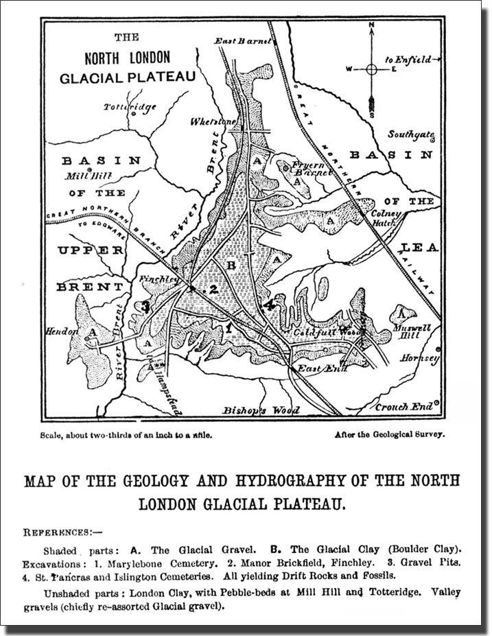 I could imagine the school and a pile of schools above it, moving slowly but surely downhill and even uphill, forced by the weight behind, wrenching off rocks in its path and engulfing them. No way to stop itself. A cliff on castors. A huge cliff of solid ice over a thousand feet high, moving south at less than the pace of any snail, ripping pieces of rock and stone, large and small, from the ground beneath it and carrying them away. Gathering stones and fossils from the different rock formations wherever it passed. Now the teacher was waving a pamphlet. In 1850 a piece of Coppetts Wood had been felled to build St James's School. A little further into the wood was a Gravel Pit where people had dug gravel and sand for their paths for years. They might even have dug sand for the mortar to build this very school. In 1874 a strange discovery had been made in the Coldfall Wood Gravel Pit. A Mr Wetherell had found a deposit of fossils and rocks jumbled together only a few feet below the surface. There were fossils and pieces of granite, slate and chalk, all embedded in Oxfordshire Clays. Large Chalk nodules had been found in Tetherdown, where I walked each day, yet the nearest chalk was miles away.