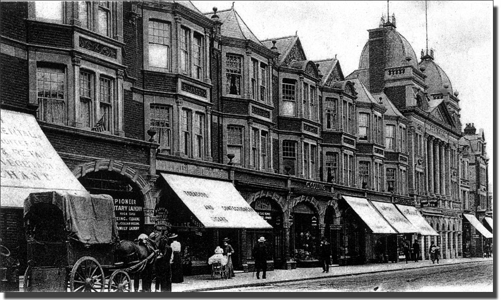 Beyond Firs, where Fortis Green Road turned into Muswell Hill Road at St James's Church, the roadway skirted the very edge of the cliff to reach the top of Muswell Hill. That angle made by Fortis Green Road and The Broadway was occupied by two large estates, with Fortis House, at what is now the end of Princes Avenue, and The Limes which occupied most of Queen's Avenue and stretched down the hill behind Colney Hatch Lane. The Limes, which was on the sites of the present Public Library and Barclays Bark, was later bought by Edmondson and developed, with other estates, to form Queen's, Princes' and King's Avenues, and all that fine parade of shops along the north side of Fortis Green and the Broadway, with their their characteristic arched fronts.
