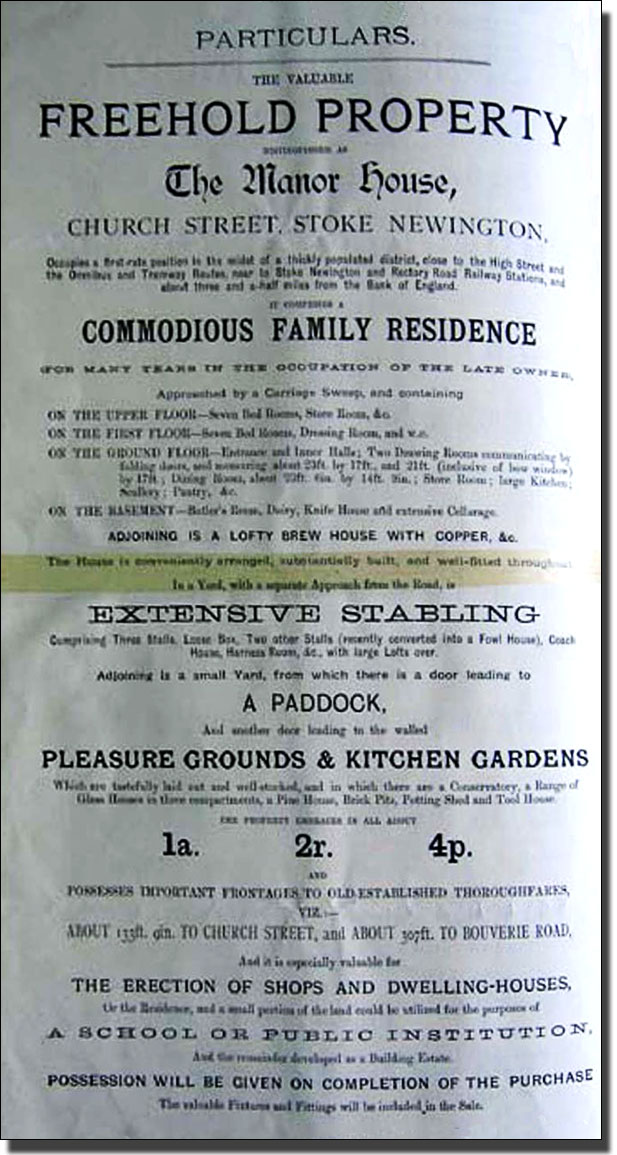Sale Document for the Manor House in Stoke Newington Church Street