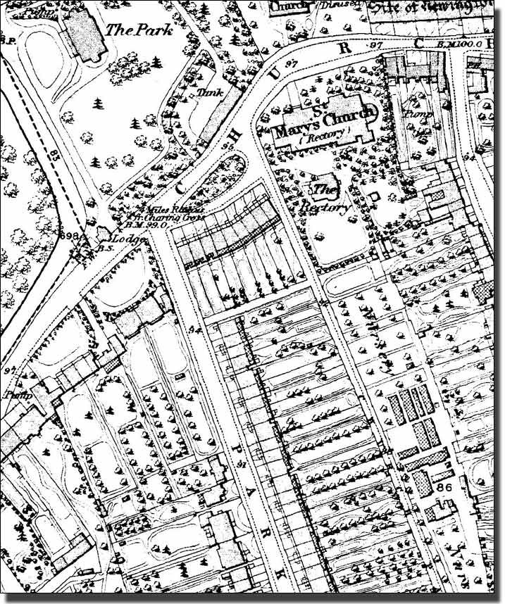 The 1868 Ordnance Survey showing the new St Mary's Church,