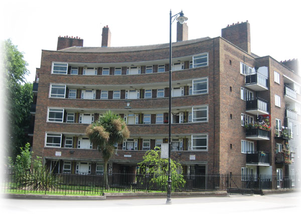 This row of houses was damaged during the Second World War and would have been demolished but squatters moved in. They had nowhere else to live, took over the properties and refused to leave. The squatters made the houses habitable after a fashion and continued to live there until the Council agreed to give them tenancies and restored the houses as flats. This squatting movement became very powerful and many later councillors cut their teeth as squatters' leaders. Some of the parents and grandparents of pupils in local schools may have been squatters here.