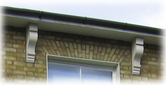 This house was built to make an impression. It is double-fronted and has an impressive. There is a rather grand porch, with columns and Ionic capitals. Gibbs brackets support the tops of the stucco window frames and the eaves and there are cast iron window box guards on the window sills. The house is built with a semi-basement, higher than usual, for the kitchen and servants. Above is the ground floor with tall windows with stucco window frames for the main reception rooms and smaller, plain windows above. Almost all the impressive stucco work is at the ground floor level. The house is built in London Stock bricks, like the one next door, but these bricks have been cleaned and are nearer the original colour. The lintels of the top windows are built of sets of wedge-shaped bricks. The openings above windows and doors always have to be held up. Today we tend to uses ferro-concrete lintels, which are made of poured concrete castings strengthened with steel rods. Sometimes we use steel joists. These lintels are not in one piece. Instead, they are made of carefully moulded sets of bricks. The line of shaped bricks makes a solid wedge. Each brick wants to fall down by gravity but it cannot do so because all the others want to fall at the same time. They push against each other and so they are all forced to stay up. The lintels above the lower windows will be the same but they are covered with stucco.