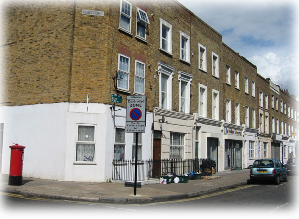 At one time this was a post Office. When the road was built it was in quite a prosperous district, with fine houses. These house were separate properties, with one family in each, but fairly soon many began to let rooms to pay the rent. Between the Two Wars the area deteriorated and the houses were broken up into flats and rooms In recent years the houses have been restored and most have been rebuilt as self contained flats, instead of bed-sits with a gas ring in one corner.