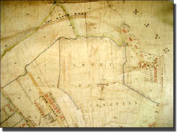 The Tithe Map of the Manor Road/Lordship Road area.In 1846 Allerton, who later gave his name to Allerton Road, made a Tithe Map of Stoke Newington. There is a beautiful reproduction in the Hackney Archive on three large sheets. The small pictures which follow and show the area around Grazebrook School, are photocopies of this map, printed by kind permission of Hackney Archive.