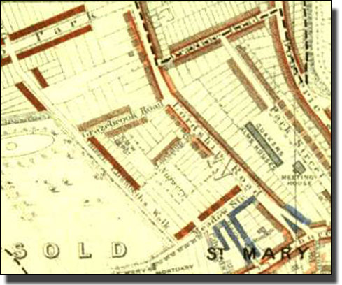 By 1894 the large houses on the corner of Manor Road and Grayling Road had been built. Yoakley Road was still called Park Street. Houses had been built on lot 13, and there were Almshouses where the modern blocks of Council flats now stand. They were called Friends Almshouses because they were built by The Friends (or Quakers) who were a very strong religious group in Stoke Newington for many years. ++OUTLINE THE PRESENT SCHOOL SITE