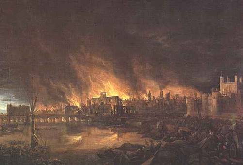 The City of London was very small and is still called The Square Mile. It was enclosed in thick walls, with gates which could be closed at night. Moorgate, Aldersgate and others are still familiar districts but well inside London. Then they were the outer limits. All this had not changed much since Roman times and everything was crowded together. City streets had always been narrow, with just room for a cart to get through. If you met a man on horseback you had to ‘take the wall’ – stand back against the wall to let the gentleman go by. If a rider and a cart met, there was a traffic jam. Add to this the fact that the houses on either side jettied out towards each other. They overhung the street so far that people on the top floors could shake hands through the windows. From below only a narrow strip of sky could be seen. It was as if the street was in a tunnel. In 1665 there had been the Great Plague, a tragic outbreak of Bubonic Plague which killed thousands and, in 1666, came the Great Fire of London